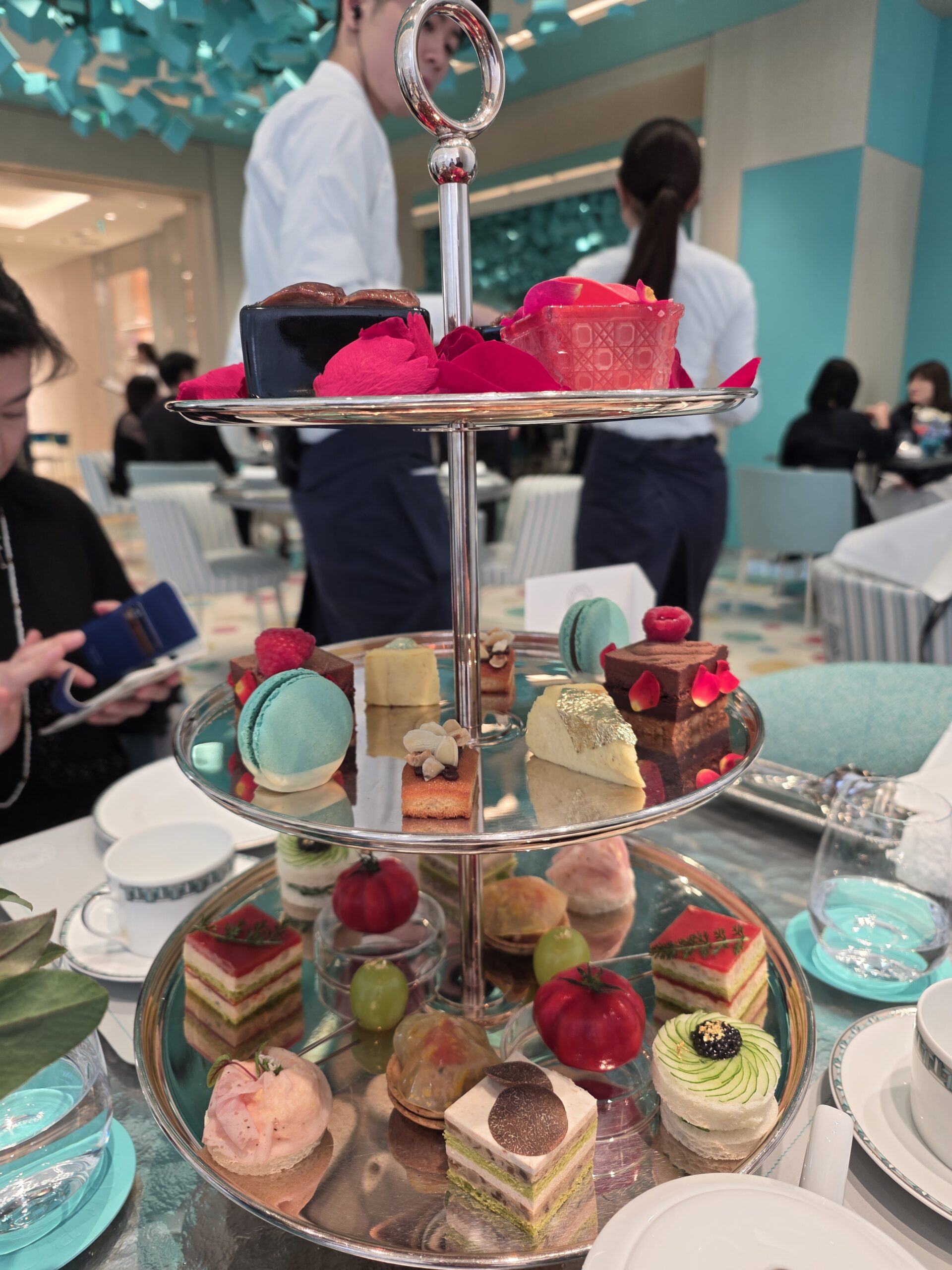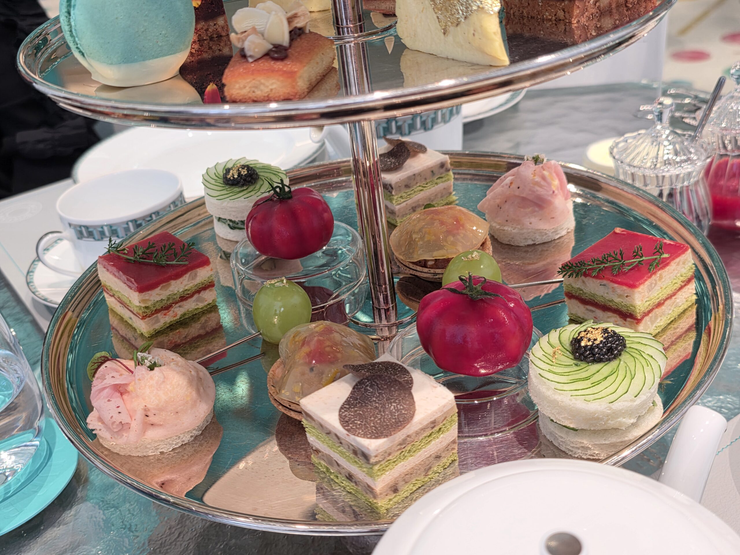 いただいたのは「Tiffany Afternoon Tea」14,300円(税込・サービス料別)。三段のティースタンドがテーブルに届いた瞬間、思わず息を呑む。