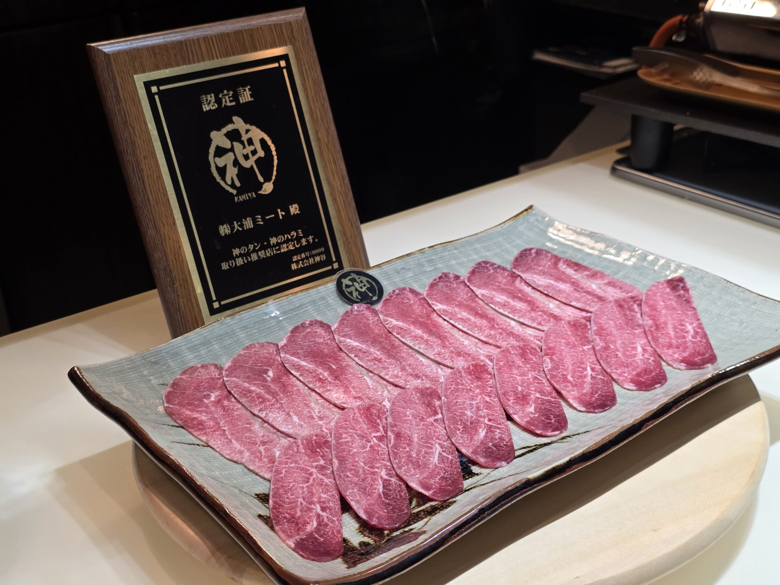 精肉卸直営ならではの目利き。肉焼師によるフルアテンド。 神のタン、神のハラミ、タン刺し、熟成肉、希少部位──一枚ごとに切り方、厚み、火入れ、食べる順番まで緻密に設計されている。