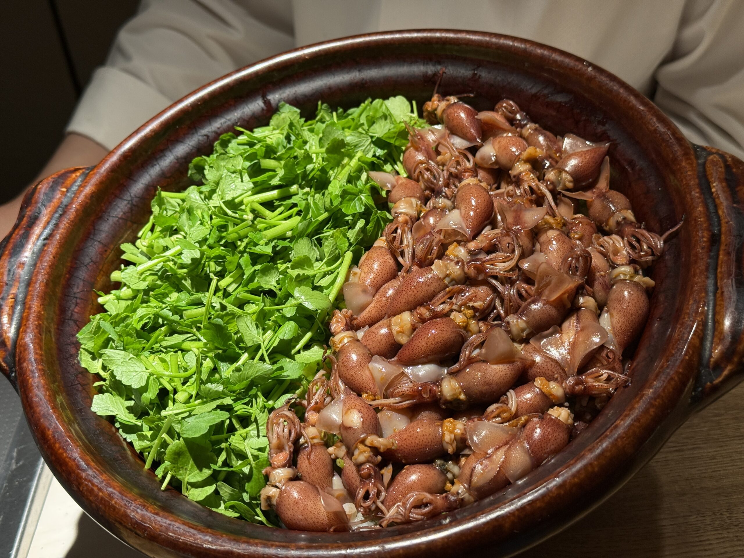 強肴から食事──天草黒牛と蛍烏賊の土鍋炊き